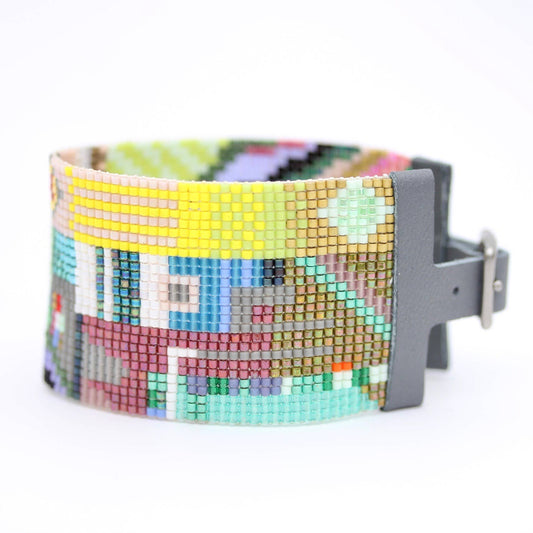 Vana Handwoven Glass Beaded Geometric Cuff Bracelet