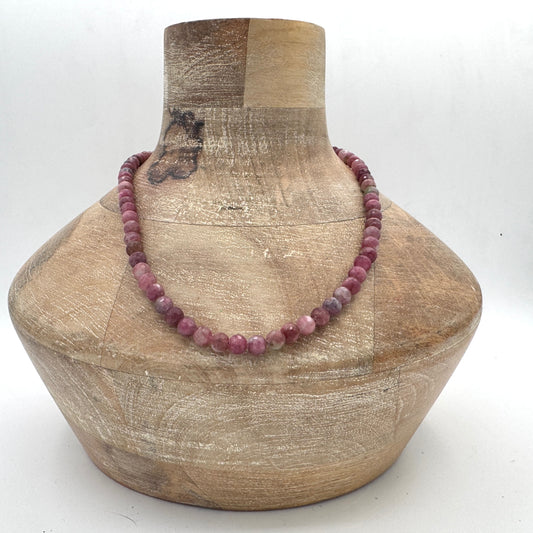 Necklace: Pink Tourmaline 4mm with Chunky Brass Hardware