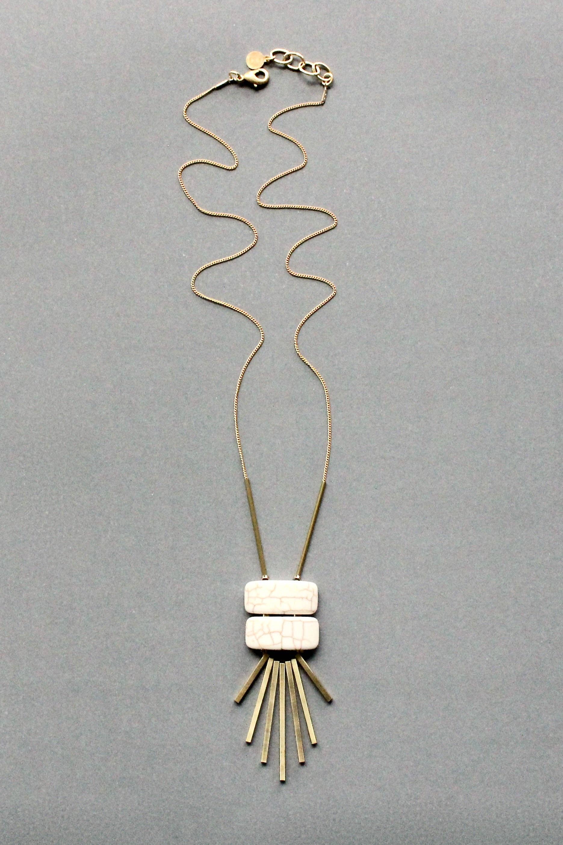 22” necklace with gold colored plated chain, magnesite, and brass bars. 1 inch extender.