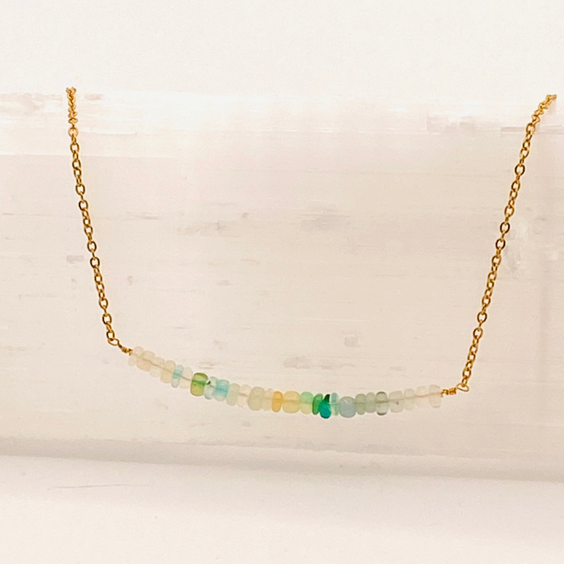 The most incredible gorgeous opals on a 2 inch gold filled bar attached to gold filled chain and clasp to be worn at adjustable lengths 14-18 inches