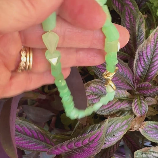 Necklace: Chrysoprase Nuggets with Chunky Brass