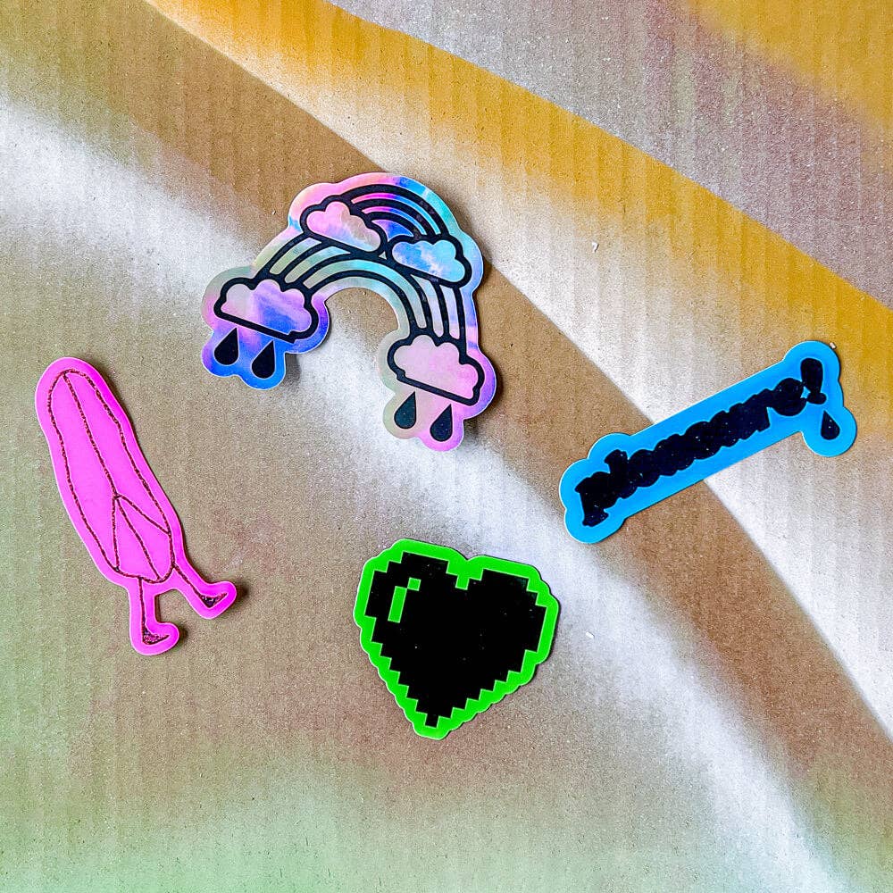 * 1 die-cut sticker (2.75 x 2.55 in.), silkscreened in fluorescent ink on premium vinyl. Dishwasher safe. Made with <3 in the USA.