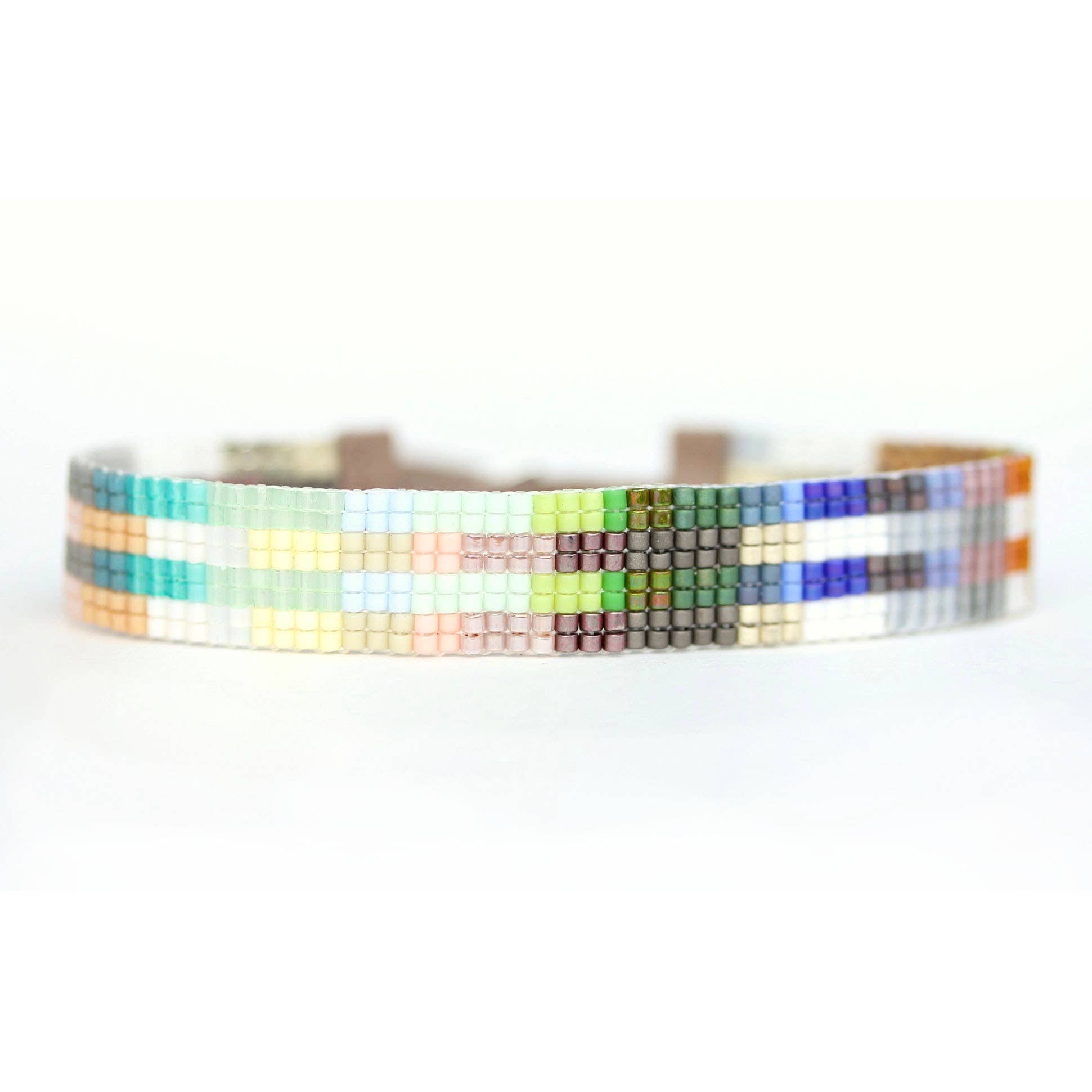 Handwoven delica beaded bracelet, 1/2" width, adjustable sterling silver sliding clasp bead.