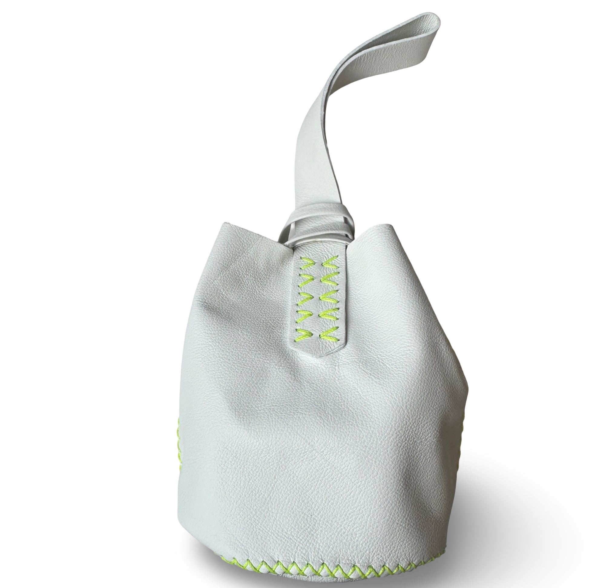 Volta Atelier Navigli Bag in White with neon yellow stitching