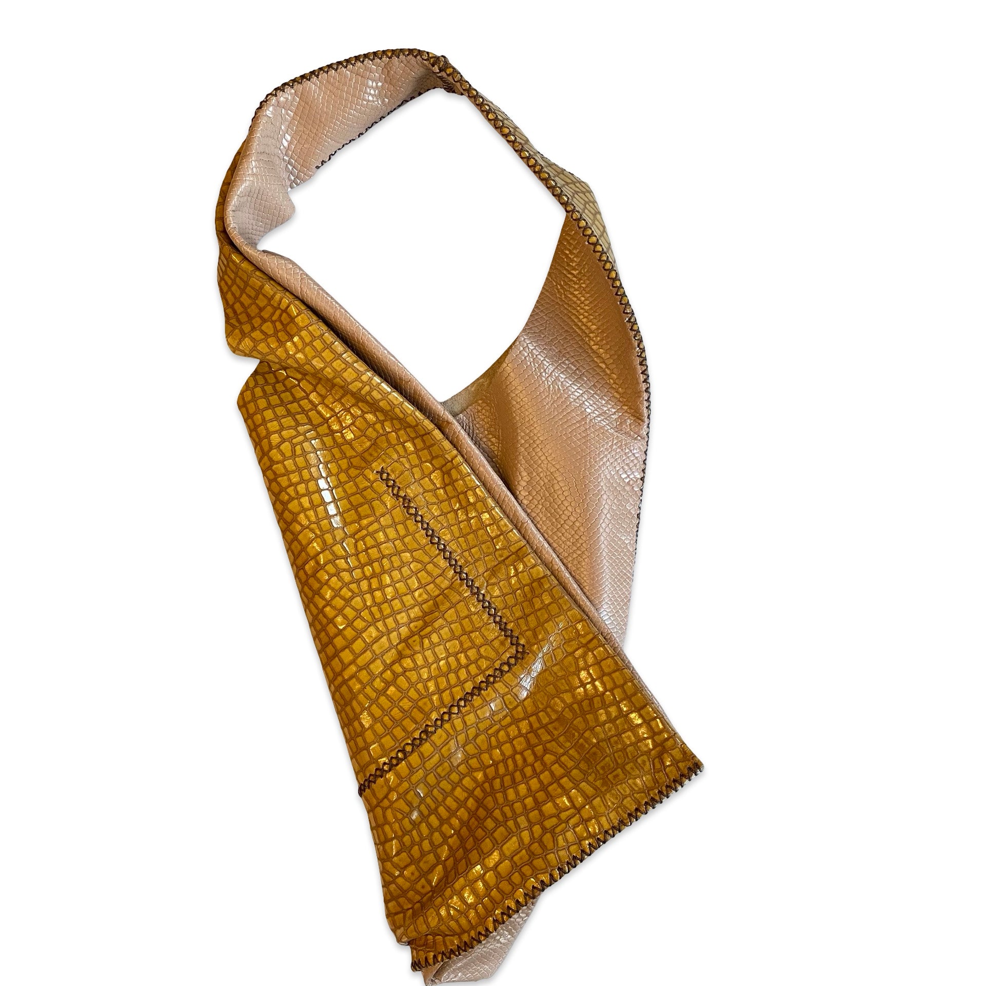 Volta Atelier Mustard and Taupe Two Toned Pink Shoulder Tote